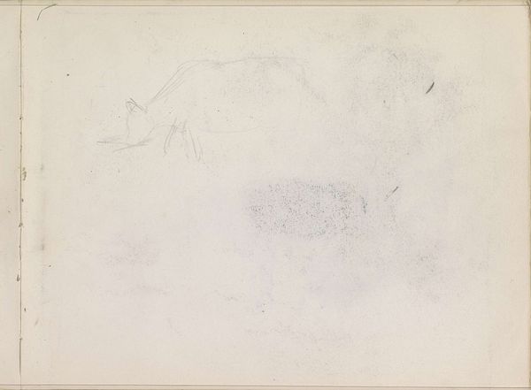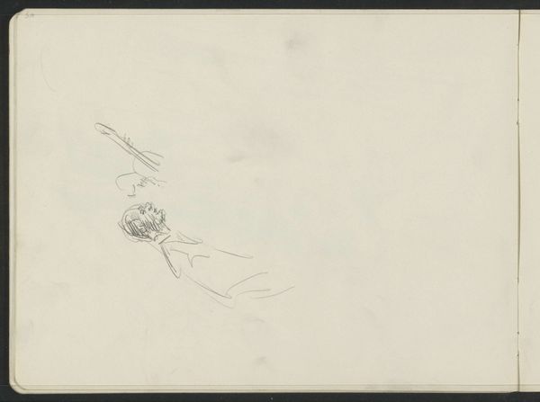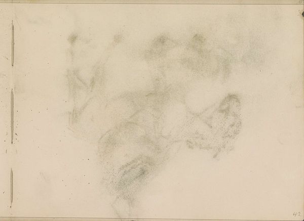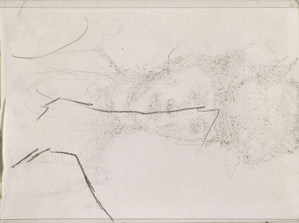 Curator: This wispy image before us, "Abklatsch van de krijttekening op blad 6 recto," is a pencil and graphite drawing by Isaac Israels, made sometime between 1875 and 1934. Editor: My first impression is a feeling of ephemerality—a fading memory almost. The abstraction invites the viewer to bring their own experiences. Curator: Indeed. The visible technique reveals Israels' process: the transfer, or "Abklatsch," creating a ghostly double of an original chalk drawing, a method often used for quick reproduction, highlighting a more technical application of artmaking. How labor-intensive were Israels’ drawings in a time when reproduction through sketching could disseminate imagery quickly. Editor: This relates directly to cultural access. Was Israels responding to an emerging need for quick and cheap reproduction or did this reflect access only for certain groups? Did access to particular artistic reproductions reflect the access to political knowledge, or even to class? I would question Israels’ participation and possible complicity in maintaining class structures. Curator: That's an interesting viewpoint, and certainly invites one to consider the socioeconomic contexts. The choice of a rather mundane, functional technique seems counter to the then rising "art for art's sake" movement. Is Israels commenting on commodification itself, or perhaps democratizing artmaking? Editor: Well, how does this "technical" aspect manifest within the greater context of art during the late 19th and early 20th centuries? Mass production and reproduction facilitated a global distribution network, which, naturally, privileged certain producers above others, leading to international tensions. Curator: A sharp consideration, for sure. The Rijksmuseum holding this piece allows a discourse on artistic agency, technique, and social structures of labor. Perhaps thinking about material as process creates the access to analyze this abstraction? Editor: This image certainly reveals art making processes that ask some urgent political questions. Curator: For sure; material decisions do a lot of work!