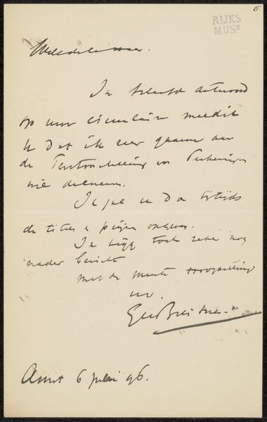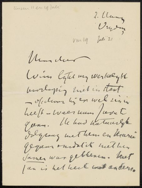 This letter to Saskia Delprat-Veth was written by Isaac Israels in Solo, Java, probably with a fountain pen. It's got that informal quality, the ink kind of pools in certain spots, and you can see the different pressures he applied as he wrote, the whole thing feels really immediate, like it came straight from the hand to the page. Looking closely, you can see how the ink sits slightly raised on the paper. It’s not just information; it’s an object, a record of a specific moment. I like the way some of the words are bolder than others. The ascenders and descenders are all different lengths and angles, making it feel very personal. Each word has a slightly different weight and texture. The little dots and crosses over the I's and T's are quite beautiful too. For me, the intimacy and directness of this letter is reminiscent of Cy Twombly’s mark making, where writing transcends language and becomes pure gesture. It reminds us that art is always a conversation, a back-and-forth between artists across time.