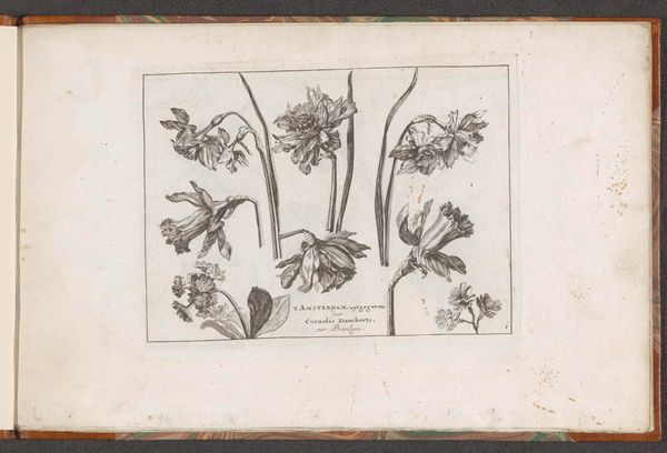 This is an undated print of lilies and other flowers, made by an anonymous artist. While seemingly a simple botanical study, this image carries the weight of historical and cultural symbolism, particularly through the representation of the lily. Consider how the lily, often associated with purity and virtue, has been historically linked to idealized representations of femininity. In religious contexts, the lily is deeply entwined with the Virgin Mary, embodying notions of chastity and divine motherhood. How might these traditional associations influence our interpretation of this seemingly straightforward floral study? Moreover, the act of depicting nature has always been intertwined with power dynamics. Who gets to represent nature, and for what purposes? As you gaze upon these delicate lines and forms, ponder the ways in which this anonymous print may both perpetuate and subvert traditional narratives surrounding gender, nature, and representation.