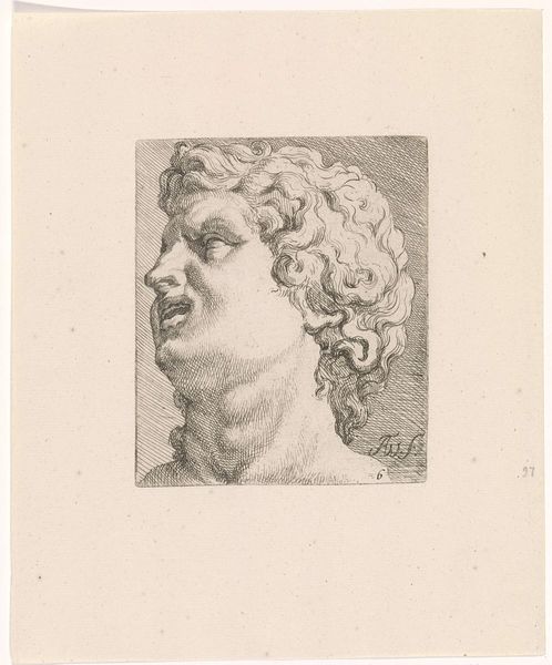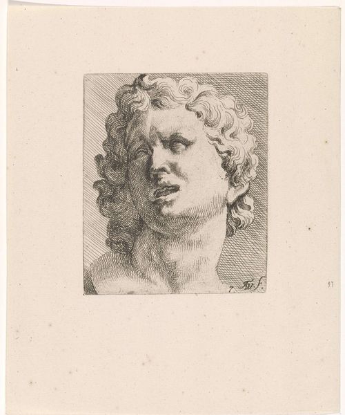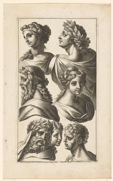 Curator: This etching by Augustinus Terwesten I, dating from 1672-1711, showcases “Twee hoofden van Niobe”—Two Heads of Niobe. What strikes you initially? Editor: Melancholy, definitely melancholy. Both heads, though facing different directions, seem burdened, even in their stillness. The material, the etching itself, enhances that somber mood. Curator: Indeed. Terwesten’s technique employs cross-hatching and fine lines to create tonal variations and model the forms, typical of Baroque printmaking. The academic art style also suggests an emphasis on idealization and classical subject matter. Editor: The story of Niobe herself resonates with sorrow. A queen who boasted of her numerous children, inviting the wrath of the gods, who then slew them all. These heads, perhaps, capture her enduring grief. It is such an enduring and heartbreaking story, with implications for power and gender roles. Curator: Exactly, this print may very well represent studies for larger history paintings. Artists would create prints of classical sculptures and figures to internalize these ideal forms. Editor: Do you believe that access mattered in those years as well? Was it about who could understand classical allegory, for example? It strikes me that the circulation of such imagery was also likely connected to social hierarchies and intellectual privilege. Curator: The accessibility of prints certainly aided the transmission of artistic ideas, contributing to academic trends that would disseminate across wider audiences, in comparison to painted renderings available only to select elite circles. Editor: Seeing it from a different perspective—prints are quite easily accessible, compared to the sculptures, of course. So, in a way, even if this wasn't the artist's intention, such an etching can be seen as a tool to allow broader audiences access to and become more intimate with classical art and culture. Curator: Precisely. This piece exemplifies how prints could democratize art appreciation even as it upheld established aesthetic principles. Considering it is on display at the Rijksmuseum, viewers should certainly experience the technical skill in person. Editor: Well, examining it has offered a reminder about both artistic skill and the sad stories we tell across time, and of the unequal distribution of art in societies past, as well as its impact.