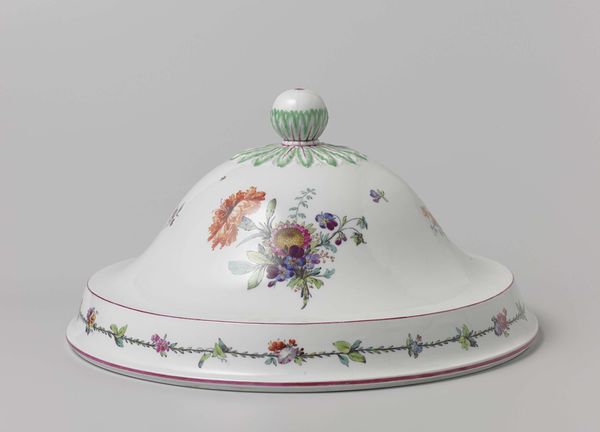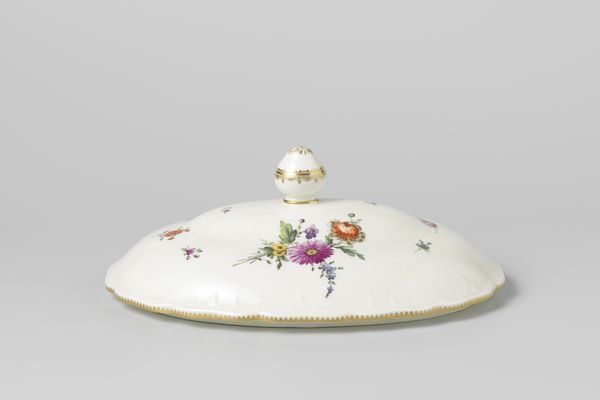 This is a porcelain cover, made by Fabriek Dominique Denuelle. Decorated with bouquets and flower sprays, it offers a glimpse into the social rituals of its time. Floral motifs were exceedingly fashionable, reflecting a fascination with the natural world that permeated elite society, particularly in France. But this wasn’t just about aesthetics; porcelain itself carried significant social weight. The laborious process and the precious materials involved made porcelain items like this highly prized status symbols, displayed in aristocratic households. The factory of Dominique Denuelle, like many porcelain manufacturers, catered to this demand, creating luxury items that reinforced social hierarchies. The floral decoration, the delicate craftsmanship, and the object itself, speak to a culture of refinement and display. To fully appreciate this object, further research into the social history of porcelain, the fashion for floral motifs, and the patronage networks of factories like Denuelle’s is crucial. The value of this piece lies not only in its beauty but in what it tells us about the society that produced and cherished it.