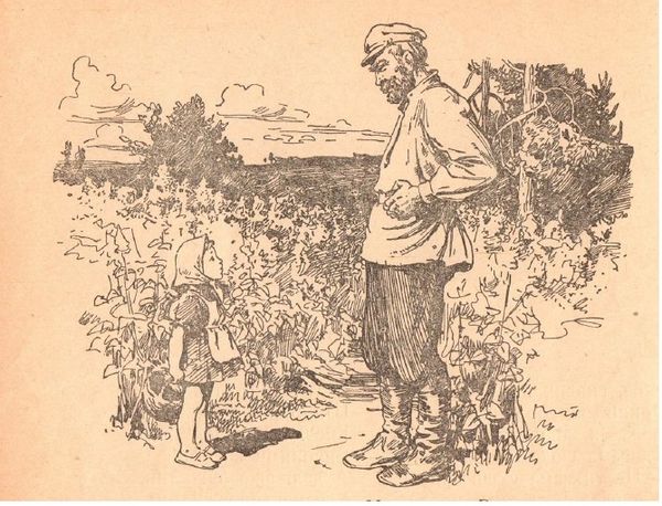 Hryhorii Havrylenko created this illustration for Mikhail Stelmakh's book "In the Hedgehog's Windmill." It offers a window into Ukrainian rural life, deeply connected to its agricultural roots and rich folklore. This ink drawing depicts an intergenerational connection, a grandfather figure sharing his wisdom with a young child. The beekeeping in the background, a traditional practice in Ukrainian culture, symbolizes labor, community, and the sweet rewards of nature. Havrylenko was born in 1927, and his life experiences would have been shaped by the tumultuous political and social events in Ukraine during the Soviet era. This simple drawing speaks to the transmission of knowledge, traditions, and cultural identity from one generation to the next, even in changing times. It reminds us of the intimate moments of learning and connection that ground us in our heritage.