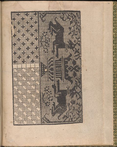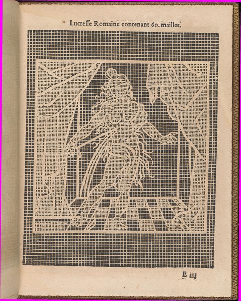Editor: We're looking at "La Pratique de l'Aiguille, page 18 (recto)" from 1605 by Matthias Mignerak, currently at the Metropolitan Museum of Art. It’s an engraving - a print, really - with this amazing geometric structure… almost like a knitting pattern! There’s a figure too, very delicate. What do you make of it? Curator: Ah, Mignerak. What I see is a whisper from the Renaissance, a secret code spun from ink and intention. "La Pratique de l'Aiguille" - the practice of the needle! This isn't just decoration; it's instruction. It is a love letter to craft, to the artistry woven into everyday life. Notice the figure—Charity, offering her breast, but trapped within the grid. Doesn’t the grid feel confining, like a set of rules, perhaps? Editor: I hadn’t really considered the grid that way. Trapped is a strong word! Maybe it's about structure enabling creativity? Curator: Perhaps! The beauty blossoms precisely *because* of those restrictions. Like a sonnet – fourteen lines to contain an eternity! What does "Charity" evoke for you, surrounded by these strict lines? Editor: Constrained giving? The grid implies calculation where there shouldn't be any? I guess, if the skill that’s demonstrated becomes too restrictive, too mannered… does it become sterile? Curator: Precisely! Think of embroidery samplers. Order gives way to freedom. It's a journey from imitation to innovation. It really asks what’s gained, and what’s lost, in skill. Editor: Wow, I hadn't thought of it that way before. So much more than just a pattern! Curator: Exactly! That grid? It’s a pathway, waiting to be embroidered with our own interpretations, one stitch at a time. It makes me wonder what kind of patterns we use to interpret the world around us now.