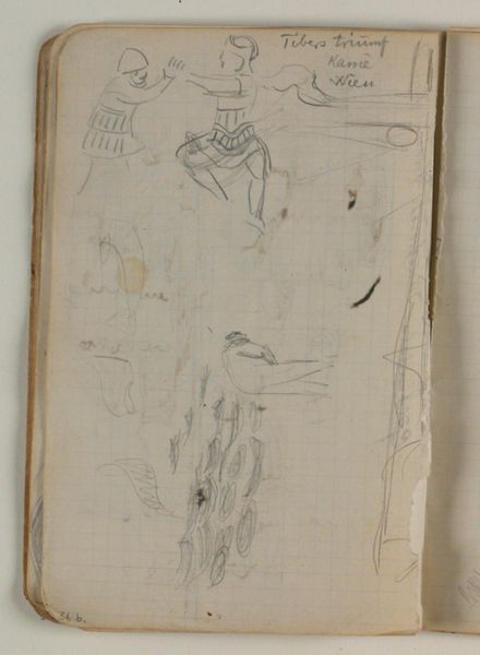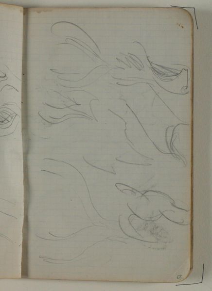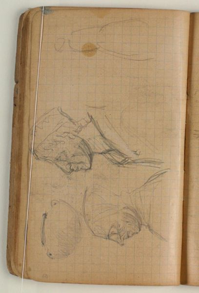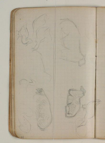 Editor: This drawing, "Skitser af et par fiskere i en jolle" or "Sketches of a pair of fishermen in a Jolle", created by Niels Larsen Stevns between 1905 and 1907, captures fishermen rendered with graphite on paper. The marks feel ephemeral. What resonates with you in this sketchbook page? Curator: The sketches, despite their simple rendering, pulse with life. Each one, a quick study of form and movement, is rendered with the cultural memory of labor. Do you notice how the tilted heads and bent backs convey the universal story of humankind grappling with nature? Editor: Absolutely, there is a real sense of immediacy! The artist seemed to capture gestures, a very human posture against the backdrop of nature's power. I hadn't considered it within that grand narrative before. Curator: And consider this: Boats, across cultures, symbolize voyages, both physical and spiritual. Here, in these sketches, the fishermen in their jolle become emblematic figures, perhaps stand-ins for our own journeys. How does that inform your understanding? Editor: I see your point; these images gain weight when understood as more than fishermen simply doing their job. The sketches possess a symbolic depth; there's something profound about these little boats amidst an unseen vastness, their continuous struggle reflected in the marks on the paper. I will have to ponder more about symbolism, it gives us another window into the work. Thank you! Curator: It is in contemplating the deeper symbolism in even the most mundane depictions that art truly speaks across generations. A powerful reminder of how human themes echo through art history.