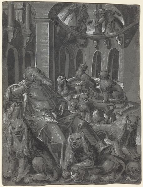 Editor: Here we have an engraving titled "Adoration of the Shepherds," dating from 1614 to 1633. It's an anonymous piece, currently held at the Rijksmuseum. There's a radiant light emanating from the baby that seems to electrify the scene. What symbols are at play here? Curator: Note how the light around the Christ child overwhelms the rest of the composition. It’s more than mere illumination; it's a halo transformed into something actively, dynamically *beaming*. What do you make of that intense visual activity? Editor: I suppose it represents divine presence, making it literally and visually clear for the viewer? It certainly seems to command our attention. Curator: Precisely. In the Baroque period, images aimed to bypass rational thought and move the soul directly. The intensity suggests a breaking of the mundane world—an irruption of the sacred made visible through light. Notice, too, how figures are arranged around the child. What do they communicate? Editor: They appear awestruck and reverent. Everyone seems transfixed by the light. Even the dog seems calm in this vibrant atmosphere. Curator: The congregation gathered symbolizes the universality of this event; the savior has come for everyone, for all of time. What do you think that teaches us about how images help people feel a connection with these traditions and beliefs? Editor: I think they provide a visualization and emotional connection to biblical narratives. These depictions have probably cemented the narrative over centuries. Curator: Yes. They give a palpable form to abstract spiritual ideas, embedding them deeply in our cultural memory. An engraving like this would spread the iconography far and wide. It becomes a shared, and shareable, dream. Editor: It's remarkable how much meaning can be packed into one image. Thanks for shining a light on this engraving for me. Curator: The pleasure was mine. Keep questioning, and keep looking!