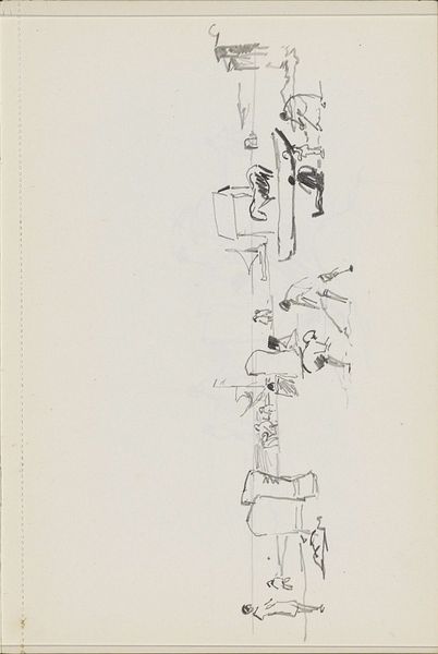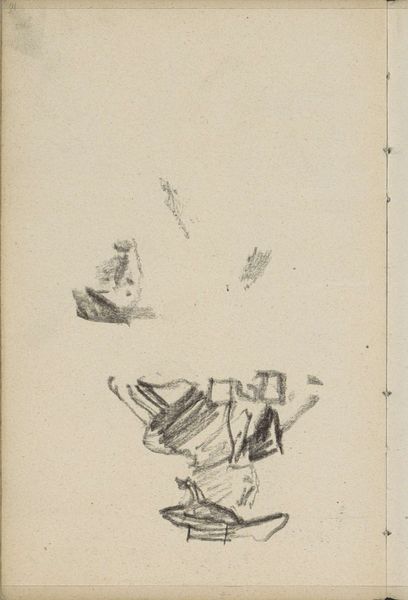 Curator: This intriguing pen and pencil drawing is titled "Trekpaard voor een met dozen beladen kar," or "Horse Pulling a Cart Laden with Boxes," by Cornelis Vreedenburgh. It's part of the Rijksmuseum's collection, created sometime between 1890 and 1946. Editor: My first thought? The sketch feels so vulnerable. The thin lines barely contain the forms, like a fleeting memory struggling to stay present. Curator: Indeed. Considering the period it was made, let's examine the socio-economic implications of representing labor in such a manner. We must ask ourselves how the romanticized representation of working animals intersect with narratives of human labor during times of significant political unrest. Editor: The horse is certainly the central image here, the bent neck almost seeming to ask for our empathy, as the horse symbolizes endurance, burden, even servitude. It evokes images of farm labor and working-class exploitation during that era, doesn't it? Curator: Precisely. Furthermore, think about how these sketches—created between 1890 and 1946, a time marked by wars and social upheavals—become visual testaments. Does the packed cart reference logistical struggles with food supplies or other resources during this period? Or does it address industrial themes? It suggests much for its size. Editor: I see the way you unpack the complex layers of meaning. I see these boxes piled high as representing our culture—its history, values, traumas. I mean, it all adds up, the pen, pencil, the drawing is very simple, though not empty. Curator: Yes. But it can also be an examination of labor dynamics, the position of marginalized laborers—in this instance an animal. This work may question these power structures within a world undergoing rapid changes. The sketch can embody societal anxiety regarding the displacement and commodification. Editor: You have expanded my sense for the work and brought more weight to it. And on closer viewing, what I initially read as vulnerability also becomes a statement of resilience. This horse keeps moving, its inherent symbolism a symbol of perseverance in challenging times. Curator: That offers a different vantage point. When we use critical and theoretical frameworks to examine an artwork like this we unveil silent narratives interwoven with social and historical contexts, allowing it to talk to us even now. Editor: This quick little drawing provides so much material and emotion. Looking through the lens of iconography as well as through a social, political, and critical one gives a well-rounded interpretation.
