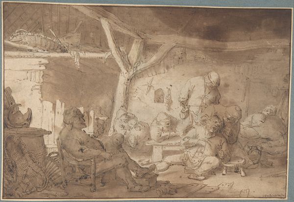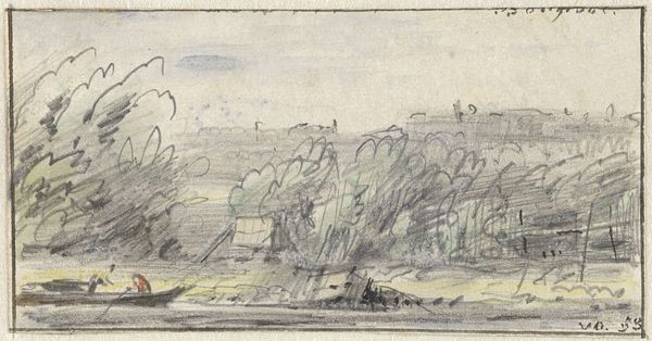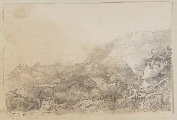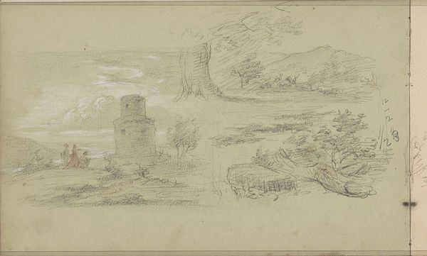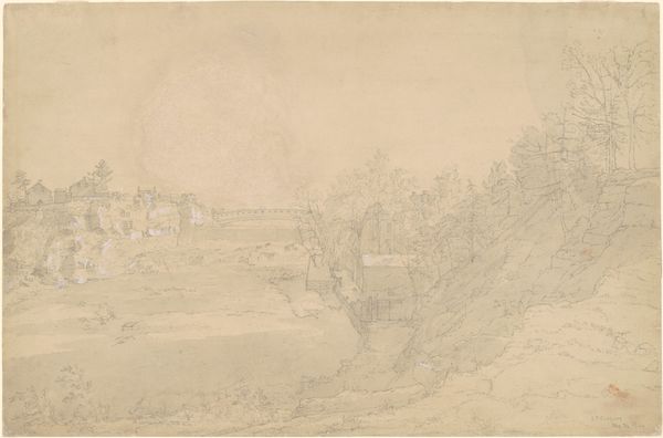 Editor: This is "Pesto" by William Leighton Leitch, a drawing made with pencil, graphite, and gouache on paper. It's currently held at The Art Institute of Chicago. I'm really drawn to the subdued tones and the way the architectural elements are almost softened by the natural surroundings. What symbolic weight do you think is carried in the juxtaposition of the ruins and the organic environment? Curator: An excellent observation. The ruined temple, likely invoking a Greco-Roman past, immediately invites us to consider themes of impermanence and the cyclical nature of civilizations. Note how Leitch, working in the Neoclassical style, uses these ruins to access a collective cultural memory. What emotional impact does this evoke in you? Editor: I feel a sense of melancholy, almost, that even these grand structures are destined to crumble. It highlights the power of time and nature. Curator: Precisely. Consider the romantic notion of ruins that gained traction in the 18th and 19th centuries, symbolizing a reflection on mortality and the sublime. Leitch is not merely depicting a landscape; he’s embedding a cultural narrative about the passage of time and the dialogue between nature and human ambition. Editor: It's like the architecture serves as a constant reminder of history, with the landscape quietly reclaiming its space. Do you think Leitch chose this specific temple intentionally, or was it simply a visually appealing subject? Curator: The choice of temple is likely intentional. These classical structures represented ideals of order, reason, and beauty, values central to Neoclassical thought. By portraying them in a state of ruin, Leitch could be prompting a meditation on the fragility of those very ideals. Notice the detail of foliage obscuring portions of the columns: nature is encroaching, asserting its own order. Editor: That makes so much sense! I see the contrast between the human-made and the natural world much clearer now. It makes you think about what will endure. Curator: Indeed. This work leaves us contemplating the ongoing dialogue between human aspirations and the enduring power of the natural world, a dialogue encoded within these potent visual symbols.