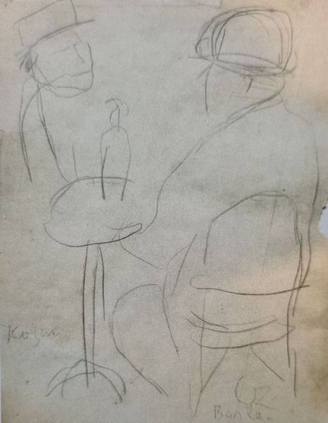 Editor: This is Vajda Lajos's 1936 pencil drawing, *Madonna Kisded Torzóval.* What strikes me is the use of such simple lines to depict a somewhat distorted figure, yet there's a recognizable maternal theme. What do you see in this piece? Curator: Formally, the drawing presents a compelling study in line and negative space. The starkness of the pencil on paper emphasizes the flatness of the picture plane. The distortions you mentioned—the disproportionate torso of the child, for instance—interrupt any conventional reading of the subject matter. What is the effect of such deviations? Editor: It definitely pulls the viewer out of any traditional association with the Madonna figure, I suppose. I'm more used to the Renaissance paintings which present that subject. Is it a modernist approach to that theme, then? Curator: Precisely. It rejects academic naturalism in favor of a more subjective expression. The stark, almost childlike simplicity challenges our assumptions. Consider how the composition invites you to question the essence of maternity. What remains when we strip away idealized forms? Editor: It feels almost like a deconstruction of the Madonna, reducing it to the barest visual elements. It's not really about religious devotion at all, more of a visual exercise. Curator: Indeed. It is in that sense that we can recognize a meditation on form. Did our conversation prompt a further interpretation of the forms or style used by the artist? Editor: Absolutely. I definitely now see past the representational and more towards how the composition itself conveys meaning. Curator: A successful reading, then. This work compels us to reassess established codes.