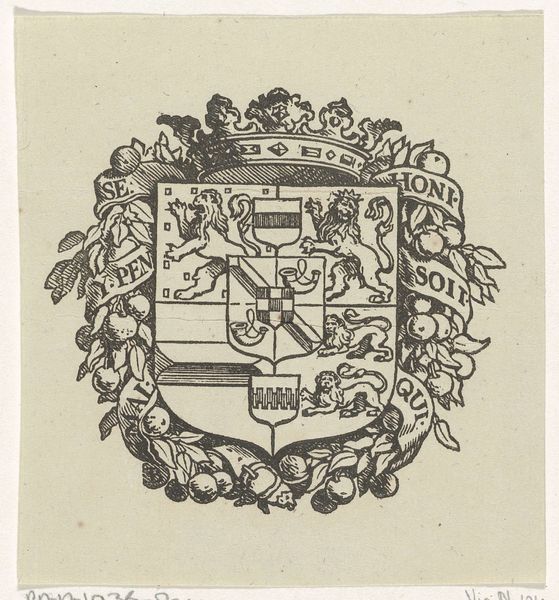 Pieter Jansz. created this crowned coat of arms with two palm branches. In the Dutch Golden Age, heraldry was not merely a symbol of nobility, it reflected a society grappling with new notions of identity and power. The traditional symbolism of the coat of arms becomes a canvas onto which aspirations are projected. The palm branches evoke victory and eternal life, while the crown suggests authority. Jansz. himself occupied a unique position in society. As an artist, he was both a craftsman and a cultural commentator, navigating the hierarchies of his time. Consider the emotional weight of claiming or aspiring to a certain status through imagery. This emblem invites us to reflect on the complex interplay between personal identity, societal roles, and the symbols we use to define ourselves. It is an intimate portrayal, reflecting the aspirations and tensions inherent in a changing world.