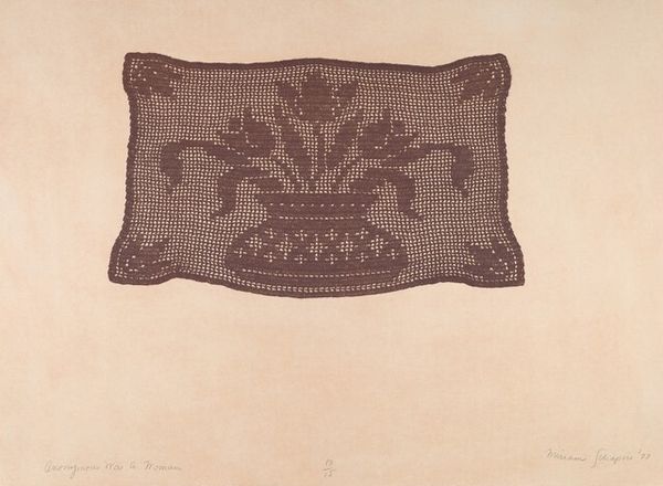 Editor: This is Miriam Schapiro’s "Anonymous Was a Woman VIII" from 1977, a mixed-media collage, print and textile work. There’s something quietly powerful about this piece – a sense of untold stories embedded in the domestic craft of lace making. How do you interpret this work, knowing Schapiro was a key figure in the Pattern and Decoration movement? Curator: Knowing the context is key. The Pattern and Decoration movement was, in many ways, a direct response to the male-dominated minimalist art scene. Schapiro, along with other female artists, sought to elevate the "decorative," which was often associated with the feminine and deemed less important. This piece reclaims textile traditions, explicitly giving voice and visibility to those who have historically remained unnamed, unacknowledged. Editor: So, the "anonymous woman" isn't just a title, it’s a statement? Curator: Absolutely. The work’s power lies in this tension between anonymity and assertion. By utilizing traditional craft techniques like textile and collage, Schapiro acknowledges the skills and labor of countless women whose contributions have been overlooked by patriarchal art history. What do you notice about the visual structure of the work, now, understanding this historical intention? Editor: It's less about the specific pattern, and more about how the pattern acts as a record or residue of women's labor. It also strikes me that the 'anonymous' label takes on new weight – it’s a political act of defiance against the silencing of female creativity. Curator: Precisely. Schapiro uses what has been culturally coded as domestic and feminine to challenge dominant narratives and demand recognition for women’s artistry and lived experiences. This act of historical recovery transforms craft into a powerful medium for feminist expression. Editor: I see it now. This isn't just pretty decoration; it’s a potent claim of artistic and social space. Curator: Exactly, Miriam Schapiro reframes the terms through which we value artistic practice, placing gender, labor, and cultural critique front and center. Editor: Thanks. I will now see Schapiro's piece with new eyes!