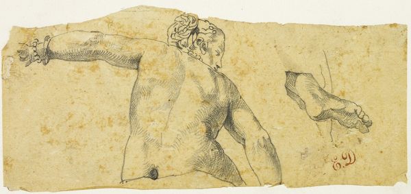 Editor: This lively pen drawing, "Polyphemus," is by an anonymous British artist from the 18th century. It’s a small work, but filled with such raw energy. How do you interpret that dynamism? Curator: It feels like a glimpse into the artist's mind, doesn't it? The hatching creates a sense of churning emotion. Perhaps it represents the cyclops’s rage, or maybe, more subtly, his inner turmoil? What do you feel? Editor: I like the inner turmoil idea. Thanks! Curator: My pleasure.