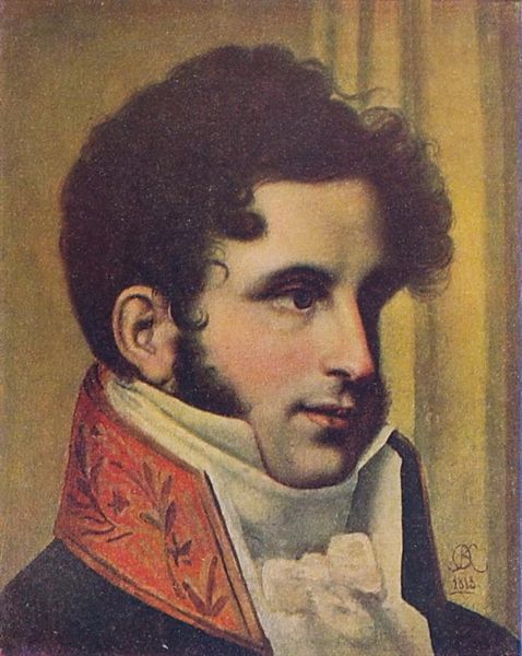 Orest Kiprensky painted this portrait of Sergei Uvarov using oil on canvas. Here, the column is more than mere architecture; it's a symbol of stability and authority, echoing the pillars of classical antiquity. This motif isn't confined to this portrait alone. Think of Renaissance depictions of statesmen, often posed against similar columns, projecting an image of strength and virtue. The column’s silent declaration of power stretches back to ancient Rome and Greece, where they upheld temples of gods and emblems of empire. The gesture of leaning, too, speaks volumes—a pose of relaxed power, seen in countless portraits across centuries. Consider how such symbols evolve, accruing layers of meaning. A column can become a symbol of oppressive power or a source of inspiration to the subconscious—a silent dialogue between the past and the present. It is these threads that bind us, connecting Sergei Uvarov to a long tradition of visual language.