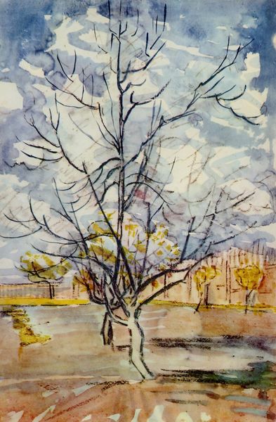 Editor: This is Alfred Freddy Krupa’s “Experimental expression in watercolor: toothbrush and plastic pen,” created in 2017. The materials listed are already so intriguing…it's just watercolor, but those *tools*! I get a very ephemeral, dreamlike impression, but somehow also very precise because of all those tight line details. What strikes you most about it? Curator: Ephemeral is spot on! It’s like a half-remembered landscape shimmering through a heat haze. The “toothbrush and plastic pen” element elevates the medium itself to the place of creative provocation, don't you think? Krupa is asking, "What if I treat this tool differently; not for control and finesse, but to get that expressive gesture that might surprise me?" Do you feel that he actually relinquishes that conventional control? Editor: I think so, especially in the sky. There's an element of chance, or improvisation. Curator: Yes! That energetic freedom suggests a certain kind of zen attitude that allows for unexpected happy accidents! You know, a good reminder for us all to loosen our grips now and then. What would happen if we swapped our usual instruments for something unusual--how might *we* find new visions and possibilities? Editor: That's inspiring! It's like the painting is inviting me to break out of my routine and play a little. Thanks! Curator: Absolutely! And perhaps, recognize the unseen landscapes within and around you every day... That’s something, isn't it?