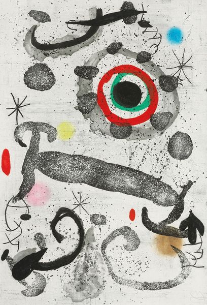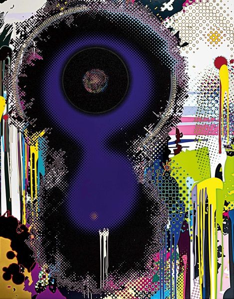 Takashi Murakami made this artwork, Genome No. 10, using silkscreen print, offset print, and acrylic on canvas. The first thing that hits you is the way he blends high and low. He's throwing these drippy, almost cartoony marks against a backdrop that feels super digital and precise, right? It’s like the painting can’t decide if it wants to be handmade or machine-made. I love the little cosmos lurking near the bottom, it is nested inside this drippy, melting shape – it's like staring into an abyss that's also kind of playful. The dots have this weird moiré thing happening that makes it vibrate, which is like a visual buzz. Murakami is always playing with this tension between the flat, commercial world and something deeper, more cosmic, maybe a little bit sad, like some of Warhol's later work. He invites us to see how those things are always bumping up against each other, for better or worse.