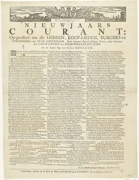 This New Year's print for 1788 was made in Amsterdam by anonymous newspaper carriers, and presented to their subscribers. The image provides us with an insight into the social and economic role of news distribution in the Dutch Republic. The text consists of poetry, a common feature of these prints, and an almanac of important dates. Visually, the print uses classical motifs, like the Greek key pattern, to create an air of established authority, while the chained circles down each side perhaps allude to the interconnectedness of the city's social life, dependent as it was on the timely distribution of news. Made during a period of political tension between the Patriots and the Orangists, the print is revealing for what it omits. Studying such ephemeral objects as this print, alongside newspaper archives and subscription lists, helps us understand the circulation of information and the construction of public opinion in the late 18th century. It reminds us that the meaning of art and printed matter is always embedded in specific contexts of production and consumption.