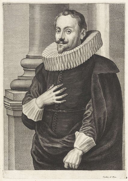 Curator: Let’s turn our attention to this etching, "Portrait of John Diodati," crafted in 1643 by Wenceslaus Hollar. It resides here with us at The Metropolitan Museum of Art. What strikes you initially about this historical image? Editor: The man's piercing gaze holds such authority, yet the etching itself, despite the intricate detailing of his clothes, feels somewhat austere, doesn't it? There’s a sense of constrained power, of intellect tempered by the gravity of his position. It projects such strong messages. Curator: Indeed. The subject, John Diodati, was a renowned Calvinist theologian and translator. Hollar made this work, when Diodati was 66. As the inscription states, Diodati was a Minister of God's Word in Geneva. This piece captures a moment in the history of religious and intellectual life. Editor: That context enriches the piece considerably. Knowing he was a translator inflects the way he holds the book. His very posture and bearing communicate conviction, as if every line etched on his face speaks to years spent wrestling with theological concepts. His race, class and role as a minister certainly play a huge part of this narrative. Curator: Precisely. And the meticulous detail Hollar employs contributes to that sense of conviction. The textures of his robes, the precision of his features – these aren't merely aesthetic choices. They reinforce Diodati's presence, his importance within the religious and social structure of his time. Editor: It prompts me to consider, then, for whom was this image created, and what purpose did it serve? Was it meant to inspire devotion, solidify his influence, or document his likeness for posterity, reinforcing existing power dynamics? Curator: All those purposes, likely intertwined. Printmaking at this time served as a powerful means of disseminating images, bolstering reputation, and projecting specific ideas about leadership and authority across a wide audience. Editor: Absolutely. I’m drawn, also, to reflect on the idea that this image—so precisely rendered—nevertheless represents a single, constructed perspective of the sitter, one that elides his potential contradictions and interiority, while promoting a narrative of Protestant leadership. The artist only had his truth to rely upon. Curator: That’s a crucial observation. Thinking about representation is fundamental to the artwork. Editor: Exactly. By focusing on its political, social and historical meanings we move past seeing art as only an aesthetic experience and use it as a powerful tool. Curator: And with those fascinating insights, we leave our audience to consider the legacy of the Reverend John Diodati and the society of which he was a product.