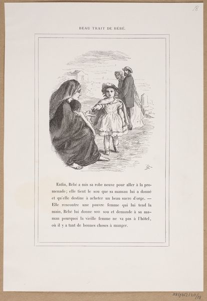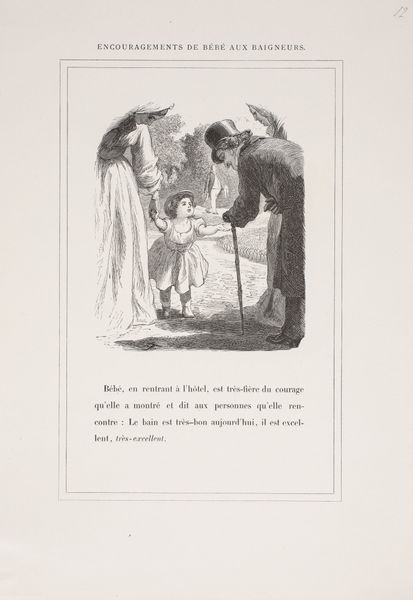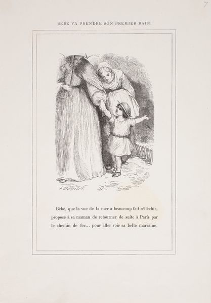 Lorenz Frølich made this print, “Sur la terre ferme,” sometime in the 19th century. It depicts a scene of leisure at the beach. The composition sets up a contrast between the relative safety of the shore and the chaotic fun in the water. The title and caption point us to the perspective of the child, for whom the scene is a source of amusement. Yet the image also speaks to the growth of a middle class in Europe with the time and income to spend at leisure. Frølich was Danish, and during the 1800s, Denmark experienced significant social and economic changes, including the growth of cities, industrialization, and the rise of a middle class. These transformations influenced artistic production and consumption. To further understand this print, one might look to sources like newspapers, travel guides, or even medical advice of the time, to learn more about the social life of the beach and the complex relationship between health, leisure, and social class. Approaching this artwork with an eye to the social and institutional context of its creation can help us understand the values and attitudes of the time.