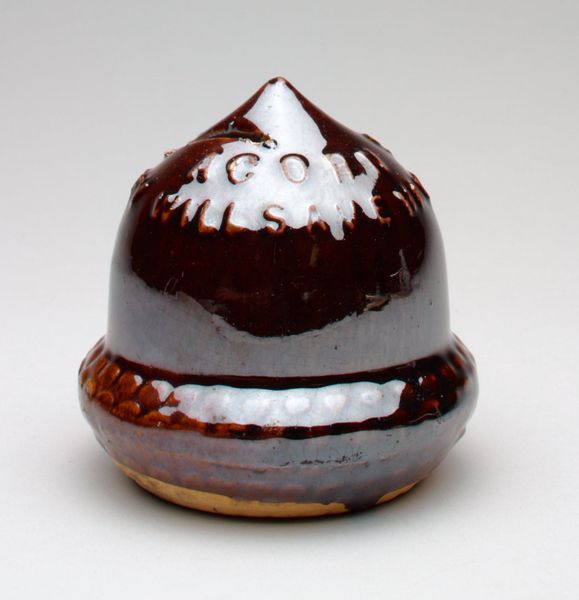 Curator: Let’s consider this striking Wierookdoos, or incense box. Created sometime between 1825 and 1875 by the artist Zokoku, it exemplifies the artistry of the Edo period. It is made of intricately carved wood. Editor: The rich, reddish-brown hue immediately strikes me. It almost pulses with warmth, and the swirling patterns evoke a sense of tranquility, like smoke itself curling upwards. Curator: Precisely! Incense boxes held great importance in the tea ceremony. The selection and display of incense and related objects became signifiers of social status and taste, often shaping collecting habits within certain circles. The rising merchant class of the era eagerly adopted such customs, and thus the objects themselves grew in value. Editor: The spiraling motif—a type of endless knot, perhaps—could suggest longevity, continuity, or even a pathway to enlightenment. Considering its use with incense, do you think this piece would’ve been intended as a symbolic aid during meditation? Curator: It's entirely possible. Symbolism in such objects reinforced hierarchical values while subtly aligning commerce with traditional virtues. Furthermore, these designs also played into an art market of competing lineages and styles. Editor: What I find compelling is the almost tactile nature of the carving. The deep relief invites one to trace the design with their fingers, deepening one’s connection with the ritual use. The very shape of this is inviting as if meant to be handled frequently. Curator: It represents a convergence, doesn't it? A beautifully crafted object of utilitarian purpose becomes a potent signifier of cultural identity. It echoes how artwork in these settings can be shaped by and reflect societal tensions and trends. Editor: Seeing it this way shifts my perspective. The elegant exterior wasn’t just aesthetics, but an index of wealth and social competition masked with supposed harmony. Thanks to this bit of socio-cultural unpacking, I look at it quite differently now. Curator: Exactly, the convergence of ritual and its societal importance helps in understanding how aesthetics can mirror our communal history.