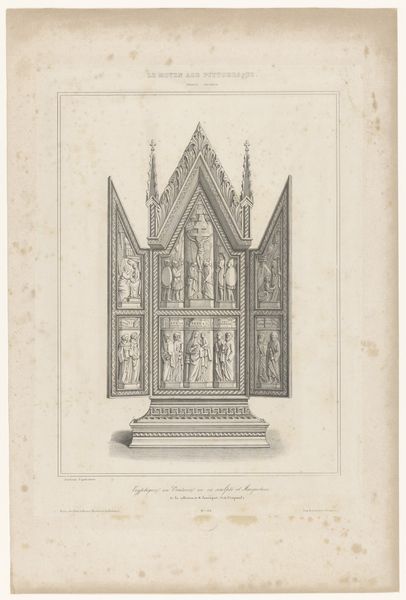 Curator: Looking at this print entitled "Two Reliquaries," etched sometime between 1676 and 1755 by Pieter Balthasar Bouttats, my initial thought is how intricately rendered it is. There's such care in the detail, especially considering its scale. It's as if he's captured entire architectural marvels on a single sheet. Editor: The first word that comes to mind is "oppression." Seeing these representations of power, of institutions that have historically controlled narratives and bodies…it makes me think of the countless untold stories that are hidden within the shadows of these very reliquaries. Curator: That's a very potent response. Considering the function of reliquaries, as containers for sacred relics, symbols of faith, Bouttats offers an interesting view on the church power and art’s role in representing, and therefore reinforcing, that power structure. We are literally looking at objects meant to inspire religious awe. Editor: Exactly. And who benefits from that awe? How is this reverence constructed? What did those "holy" relics really stand for in their own time? Did they reflect or challenge injustices? This image brings up questions of access, of who gets to control and benefit from the narratives around these historical figures represented, literally placed upon a pedestal for reverence. It almost feels violent when thinking of colonial subjugation. Curator: I agree. This image is an echo chamber to the institutional power of religion. The craftsmanship emphasizes this authority, reflecting both religious patronage and the church's central place in society. These objects embody baroque sensibilities, celebrating visual drama that in this instance bolsters their symbolic meaning, and in turn influence and power. Editor: And think of the indigenous spiritual practices and objects suppressed, destroyed, and replaced. To contextualize it for modern times, it reminds me of contested objects, and how institutions play an active role in deciding who gets to lay claim to a culture's belongings. Curator: Absolutely. Bouttats’s “Two Reliquaries,” through their meticulous portrayal and historical context, serve as complex documents which reflects on issues surrounding art, power, and belief throughout European history, but not without erasing different people's history at the same time. Editor: It forces us to really question whose stories are celebrated and protected versus those that are actively silenced, distorted, or erased by these same institutions. It really shows us the power that museums still possess today, how it carefully shapes collective historical and cultural memory.