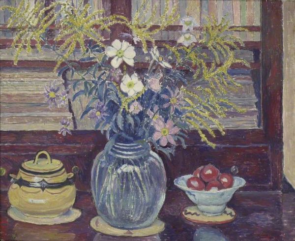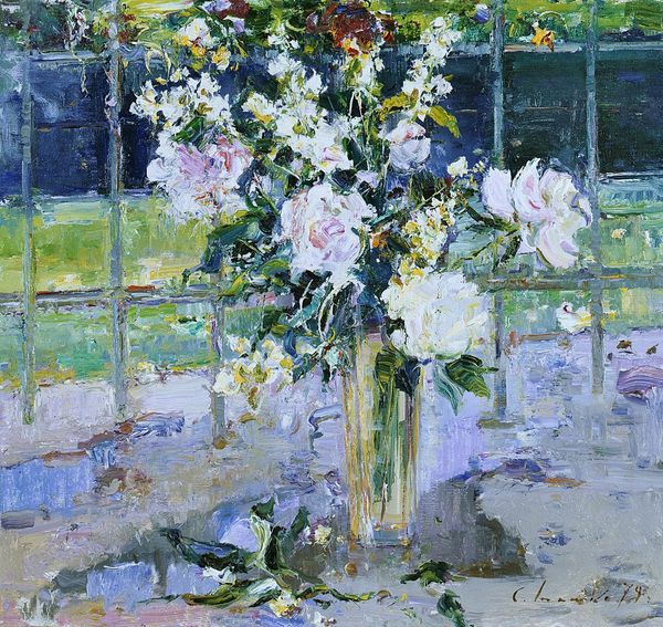 Konstantin Korovin made this painting, ‘Lilacs,’ with oil on canvas, though when exactly is a bit of a mystery. The paint is applied with a kind of juicy confidence, and it feels very much like a direct response to the subject, like he’s wrestling with the blooms, the lemons, the patterned jug and trying to get a handle on their combined presence. Look how the lilacs are rendered, with these thick daubs of purples, pinks and whites, almost like he's building the flowers out of pure colour. The brushstrokes are so visible, so present, that you can almost feel the energy of his hand moving across the canvas. You can also see the influence of Impressionism, particularly in the way he captures the light reflecting off the surfaces of the glass objects and the tablecloth. It reminds me of Morisot, her touch was so fleeting and yet somehow so grounded. Ultimately, this painting isn't just about capturing a scene, it's about the act of seeing itself. It’s about the process of translating the visual world onto a two-dimensional surface, with all its messiness and complexity.