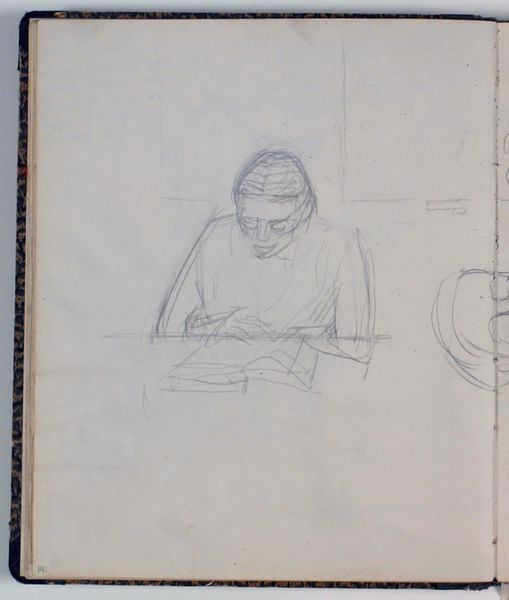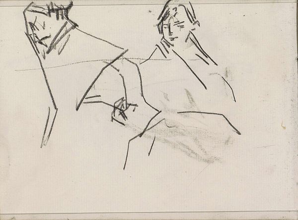Editor: Here we have Alevtyna Kakhidze's "Untitled" from 2022, rendered in ink on paper. It's a sketchbook spread, with two figures facing each other amidst handwritten text. There’s something very raw and immediate about it. What do you see in this piece? Curator: This work speaks volumes about the artist's engagement with the political and social realities of her time. The handwritten text surrounding the figures becomes integral to the drawing. Are you able to decipher the text? What do you think its relationship is to the images? Editor: I believe it’s in Ukrainian. I can see the phrase "mova nenavysti", which I think translates to "hate speech" near the figure on the left with the distinctive glasses. The figure on the right seems to be surrounded by longer blocks of text. Curator: Exactly. Considering Kakhidze’s background as a Ukrainian artist, particularly in the context of ongoing geopolitical conflicts, we can view this piece as a powerful commentary on the psychological impact of violence and oppression and the proliferation of hateful rhetoric in society. How does the artist use simple line drawings to convey a feeling? Editor: It's interesting how she’s using a seemingly simple, almost childlike style. It feels both vulnerable and direct somehow. Maybe that rawness you mentioned comes from this unfiltered expression? Curator: Precisely. The starkness emphasizes the immediacy and personal nature of the work. What if that childlike simplicity helps cut through the complexity? Is it about simplifying communication during times of great political challenge? Editor: I hadn't thought of that. Now it gives me a new appreciation for her work. Thanks for offering such a different reading! Curator: My pleasure. Seeing art this way reminds us to engage critically with the messages artists are sending in politically fraught moments.
