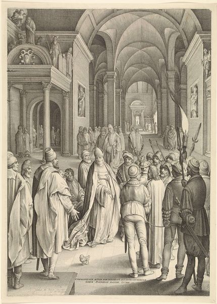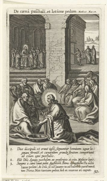Nicolaes de Bruyn created this engraving of The Last Supper at an unknown date. De Bruyn lived through the religious and political upheaval of the Dutch Revolt, which saw the Netherlands fighting for independence and religious freedom from Spanish rule. In this print, notice how he departs from traditional depictions of the Last Supper, which often highlight the solemnity and divine nature of the event. Instead, De Bruyn infuses the scene with elements of everyday life, drawing our attention to the human aspects of Christ and his disciples. The setting is not a grand hall, but rather a common room, suggesting intimacy. Look at the figure in the foreground, seemingly unaware of the spiritual significance of the moment, which could be interpreted as a commentary on human fallibility and the distractions of earthly existence. This reinterpretation invites us to reflect on the complexities of faith, doubt, and human nature. The emotional resonance of the image lies in its departure from idealized representations, allowing viewers to connect with the scene on a more personal level.