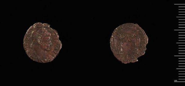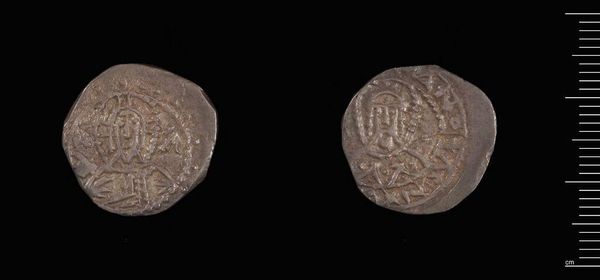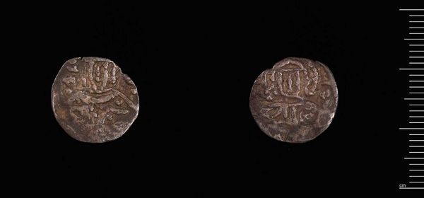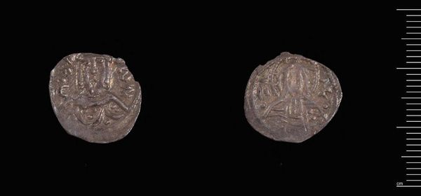 Curator: Before us, we have the "One-eighth Stavraton of John V and Andronicus IV," a coin currently housed in the Harvard Art Museums. Editor: It's quite small, isn't it? And worn; it gives a real sense of the passage of time and the hands it must have passed through. Curator: Indeed. This piece offers insight into Byzantine political structures, minted during a tumultuous period of co-rule. The coin's imagery and inscription served as a form of imperial propaganda. Editor: Imperial propaganda shrunk down to fit in your pocket. I wonder about the message it sent to the everyday person using it; did it inspire confidence, or just represent another form of oppression? Curator: The value itself would be a statement, reflecting monetary policies of the time and the emperors' attempts to stabilize the economy. Its circulation highlights the state's influence on even the smallest transactions. Editor: It’s amazing how such a tiny object can speak volumes about power, economics, and the lives of ordinary people. Curator: Precisely. Its preservation allows us to connect tangible artifact with abstract concepts of history and society. Editor: It definitely makes you think about who benefited and who was perhaps further marginalized by the systems this little coin represented.