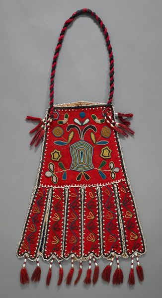 Diviners carry the tools they need for an ifa divination ceremony in a beaded bag. The three faces on this bag refer to Eshu, the messenger divinity associated with the divination process. The face of Eshu is also carved at the top of the tray seen nearby. The beaded flywhisk symbolizes the status of diviners; its many shapes, colors, and designs signal their ability to see what is not usually visible. While ifa originated in West Africa, it is also practiced under different names in Brazil, Cuba, and the United States. In 2005, the ifa divination system was added by UNESCO to the list of “Masterpieces of the Oral and Intangible Heritage of Humanity.”