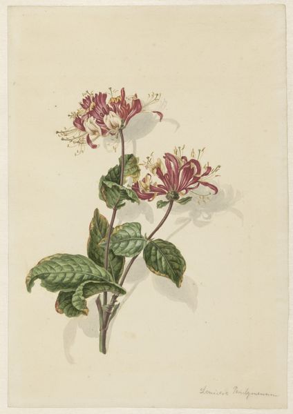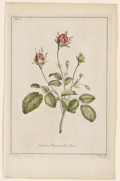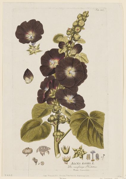 Editor: This delicate print, "Gomphrena" by Philip Miller, created sometime between 1755 and 1760, is quite striking. It’s botanical art, a watercolor and tempera on what looks like a cream paper. The round flower heads almost seem to float. How would you interpret this work? Curator: Ah, yes, it's utterly charming, isn’t it? To me, it’s more than just botanical documentation; it whispers of a very specific time and place, the burgeoning age of scientific exploration, colliding, almost comically, with artistic fancy. Notice how the artist meticulously renders the "Gomphrena's" textures. Can't you almost feel the slight roughness of the purple globes? Editor: I can see that. The level of detail is impressive. So it's a mix of science and art? Curator: Precisely. It speaks of the 18th century's obsession with cataloging the natural world. Artists were part botanist, part explorer, rendering these delicate life forms with a scientific eye and a bit of playful affection. But look closer—do you see how some elements appear stylized, almost exaggerated? That’s where the artistry truly shines through. It invites contemplation, doesn't it? Editor: Yes, it does. I initially just saw it as a pretty picture, but now I see the deeper layers. Curator: Exactly! These early botanical prints are little time capsules, aren't they? Full of history, scientific curiosity, and a quiet appreciation for the beautiful resilience of nature. Editor: Absolutely, I am viewing botanical art in a new way. Curator: Glad to spark some curiosity, as that is one of art's gifts to the observer.