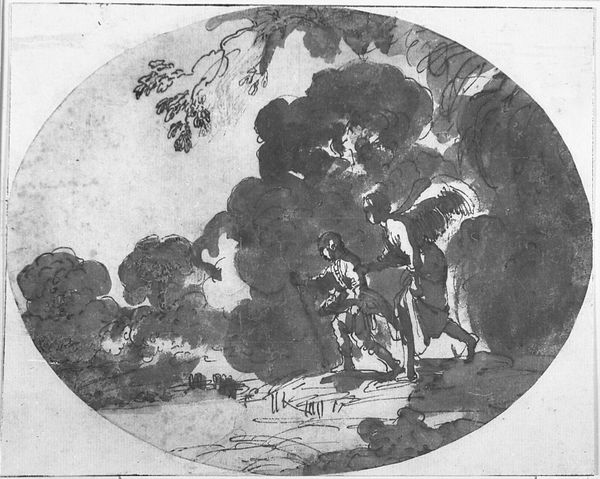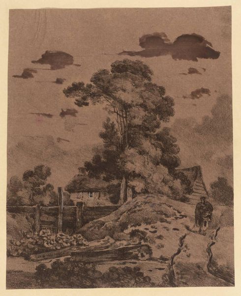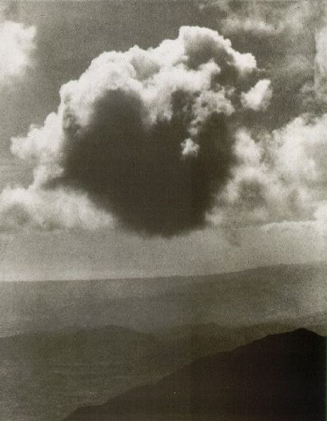 Editor: This intriguing untitled landscape, created in 1913 by Nicholas Roerich using charcoal, feels both monumental and ephemeral. The dense clouds dominate the composition, seemingly about to engulf the landscape below. What symbolic weight do you see in this dramatic rendering? Curator: The visual weight of the cloud certainly dominates. Roerich’s interest in symbolism allows us to interpret them not just as weather phenomena but as a signifier for shifting states, transformation and perhaps even impending doom or renewal. Given the historical context of 1913, do you find premonitions of global upheaval in the drawing? Editor: That's fascinating. The drawing becomes a visual metaphor for the anxieties of a pre-war era. I hadn’t considered the cultural context that deeply. Curator: Precisely. And notice the contrast between the solidity of the dark land below and the fleeting, almost spiritual quality of the cloud. What might the landscape at the bottom represent? Editor: Maybe it's the grounding force, representing tradition or stability in contrast to the unpredictable future symbolized by the clouds? Curator: An astute observation. Consider how frequently the imagery of mountains appear in Roerich’s work, as potent symbols, which possess both spiritual and cultural continuity. This visual shorthand enables a cultural memory. Editor: This has completely changed my understanding; I initially saw only a landscape, but it's so much more layered. Curator: Indeed. Roerich invites us to see beyond the surface, recognizing that landscapes are never just passive settings but hold within them the weight of history, emotion and shared cultural understanding. Editor: Thanks. This has made me appreciate the piece much more. Curator: It’s in decoding these visual dialogues that we truly discover the richness of the artwork and its resonance throughout time.