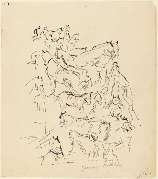 Wouter Verschuur rendered this study of "Paardenkoppen," or "Horse Heads" with pen and ink sometime in the 19th century. Verschuur, whose career took place against the backdrop of the Dutch Romantic movement, specialized in equestrian scenes. Horses in 19th-century Dutch art were more than just animals; they often served as symbols of power, wealth, and the agrarian lifestyle that was increasingly idealized as industrialization took hold. But there is also something of the animal itself that we can glean here; the horse was a partner, a co-laborer, and a central figure in rural life. Looking at these sketches, one can feel the artist's fascination with the animal. Each head is rendered with unique detail, capturing different expressions and angles. Beyond their aesthetic value, these studies are invaluable in understanding the cultural and economic importance of horses during Verschuur's time. It makes you wonder about the nature of labor, and the relationship between humans and animals.
