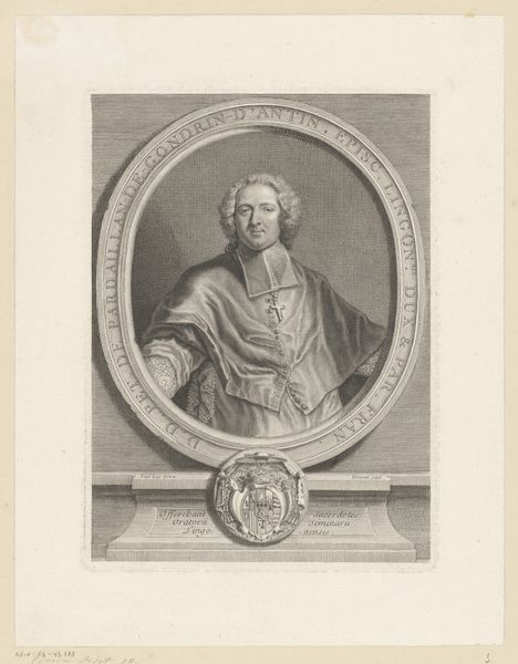 Laurent Cars created this portrait engraving of Cardinal Lorenzo Corsini, who later became Pope Clement XII. Encircling the portrait, the oval frame bears an inscription, a common visual motif in papal imagery. The inscription not only identifies the subject but also frames him within a legacy of power. Below the portrait, a heraldic shield displays the Corsini family's coat of arms. These symbols—stripes and a bend—aren't merely decorative; they are emblems of lineage, authority, and the weight of familial history. Heraldry, like many symbols, has roots stretching back to ancient times, evolving from simple battlefield identifiers to complex declarations of identity. Consider how such symbols resonate across centuries. In antiquity, emblems on shields stirred troops’ courage and connected them to ancestral valor. Similarly, the Corsini coat of arms serves as a visual anchor, grounding Clement XII in a tradition of power. This continuity is not merely historical, it is psychological. The symbols evoke deeply rooted feelings of belonging, authority, and continuity.