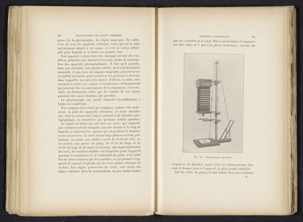 This is a page from an unknown book, showing two diagrams of a water sampling device. Although the book is anonymous, this is a very deliberate piece of publishing. Looking at the illustrations, the main material interest here is obviously the metal of the sampling device itself. It would have been made using processes of casting and machining, most likely in a factory setting. Consider all the steps involved: the design, the making of the molds, the pouring of the molten metal, the finishing. We might also think about the social context of the book. It’s an example of industrial production, with all the labor and resources that entails. It is also a tool for distributing information and knowledge, enabling the standardization of testing protocols. These things allow for more efficient management and exploitation of natural resources – including water. We can see that materials, making, and context are all inextricably linked. By considering these elements, we gain a fuller appreciation of the book as a historical and cultural artifact.