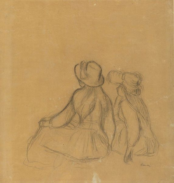 Editor: This pencil sketch from 1850 is a preparatory study by Józef Simmler, titled "Sketch of the group of the Virgin Mary and Mary Magdalene to the painting ‘Entombment’". It depicts two draped female figures embracing. There's a real sense of grief and intimacy here. What can you tell me about this work, placing it in its art-historical context? Curator: It’s interesting to see this within the broader context of Romanticism and the rise of nationalistic art movements. Simmler, as a Polish artist working under occupation, would have been very conscious of how his work was received. The pathos here, focusing on the Virgin and Mary Magdalene, certainly connects to religious painting of the period, but do you think there's a possible symbolic interpretation related to the Polish struggle? Editor: I hadn't considered a direct link to Polish nationalism, but now that you mention it, perhaps the women represent a mourning for Poland itself? Is this a common interpretation of Simmler's work? Curator: It is within his larger output. Think about how grief and suffering, particularly in female figures, were used throughout 19th-century art to evoke a sense of loss, but also of resilience. This intimate scene can transcend the strictly religious. Considering that “Entombment” has the Virgin Mary and Mary Magdalene grieving over Christ’s dead body, what meanings would this entail when understood in the broader cultural moment? Editor: So the universality of grief is being tapped into to elicit an emotional response beyond just the biblical scene. I hadn't considered the power dynamics at play for artists in occupied territories. Curator: Exactly. And it makes one reconsider how such historical circumstances shaped Simmler's artistic choices and the reception of his paintings and drawings like this. Editor: Thanks, that perspective on nationalism shaping Romanticism gives me a much deeper appreciation for what's happening in this sketch! Curator: Indeed, and hopefully helps us all recognize art's function in social and political spheres, then and now.