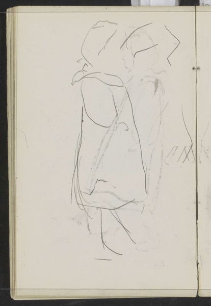 Isaac Israels made this sketch of a seated girl with a hat using graphite on paper. The rapid lines suggest immediacy, the artist capturing a fleeting moment. Israels likely favored graphite for its convenience, portability, and capacity for quick notations. Graphite, essentially processed carbon, allows for a range of tonal values. The softness of the material enables smooth gradations and subtle shading effects. The work’s significance lies in its candid depiction of contemporary life. Israels, like many artists of his time, was interested in modern subjects. The sketch emphasizes the handmade quality of the work, contrasting with the mass-produced goods depicted. It invites reflection on the value of artistic skill and the human touch in an age of increasing mechanization and labor issues. The sketch challenges traditional hierarchies by elevating the everyday. The focus on material, making, and context highlights the interconnectedness of art, craft, and society.