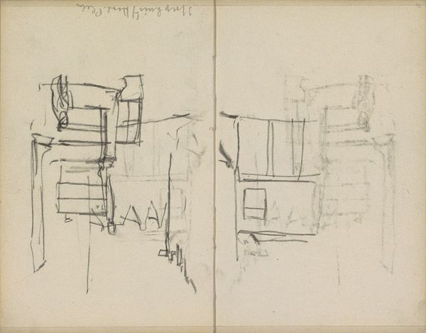 Editor: This drawing, "Gezicht op de hoek van de Haarlemmerstraat en de Korte Prinsengracht te Amsterdam" by George Hendrik Breitner, was likely created between 1906 and 1923 using pencil on paper. It feels very immediate, almost like a quick sketch capturing a fleeting moment. What catches your eye when you look at it? Curator: I'm drawn to the sketch's ability to convey a sense of place and time through minimal means. The buildings are only suggested, almost skeletal, but that's enough for our minds to fill in the blanks, isn't it? It's like a coded message, a cultural shorthand. What do you think these quick strokes evoke? Editor: I see a kind of honesty in the unrefined lines. It’s not trying to be perfect, it’s just trying to capture something real. But what cultural meanings might be embedded in such a simple sketch? Curator: Think about Amsterdam itself, its identity as a bustling port, a centre of trade and immigration. The implied architecture evokes the solidity and permanence of Dutch society even if the rendering appears to be an impromptu sketch. It is also important to remember that during the rise of modernity and photography, sketches served a very particular cultural function. The artist's 'hand' provided a uniquely 'authentic' image. What impression does it leave you with, considering that cultural context? Editor: So, the sketch isn't just a depiction of a place, but also a symbol of cultural values and a reaction to artistic shifts? I’m starting to see the layers beneath the surface! Curator: Exactly! The image holds history. What seems simple holds encoded visual meaning which becomes richer as you keep on learning. Editor: I never thought I could learn so much from a simple drawing like this. I appreciate you sharing these observations!