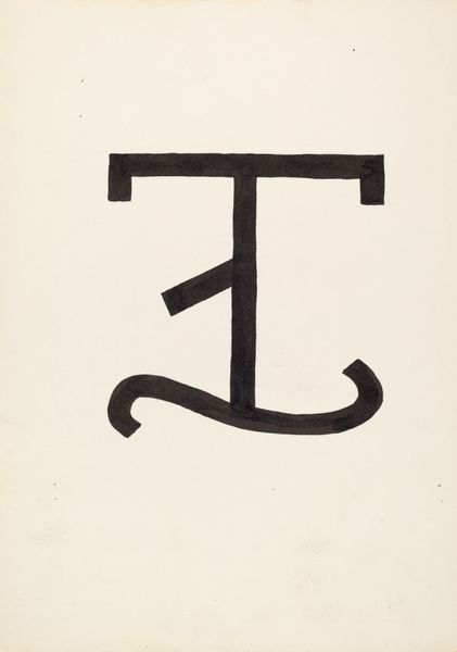 Editor: Here we have J. Henry Marley’s "Cattle Brand," made around 1936. It seems so simple, just thick black lines on paper. What strikes me is how this shape feels both abstract and deeply referential. What do you see in this piece, and how would you interpret it? Curator: What I see here is an attempt to encapsulate identity, not just of a rancher, but of an entire era. These brands were more than just ownership marks; they were symbols of family heritage, hard-won territory, and a distinct way of life. They represented security and loss. Notice how the interwoven letters are nearly indecipherable. Editor: I do see how they represent a historical time and place, with cultural connotations and value. It seems the branding is both a design and a cultural statement. Curator: Precisely! And the weight of that statement! Imagine the permanence of a brand seared onto skin. Consider how such a brutal act creates an undeniable mark. A brand asserts control, yet also testifies to vulnerability, a fascinating duality when it’s considered this deeply. What emotions rise when you think of that process? Editor: It definitely feels primal. I hadn't considered that. Curator: And think about how that mark becomes a logo, a symbol repeated endlessly. In that repetition, it carries memory, intention and even authority. And that act creates an association. Now consider that cattle branding has changed little over centuries. Editor: So much information conveyed through what looks like a very straightforward design. Thank you for the history and cultural implications, fascinating! Curator: Indeed! Thinking about this work reminds us that simple symbols can carry profoundly complex narratives.