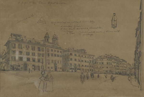 Curator: Herman Armour Webster created this etching, "Invitation Head," a blend of cityscape and personal correspondence, dated November 16th, 1909, from Paris. Editor: The sepia tones and delicate lines evoke a sense of nostalgia, a longing for a bygone era. It feels very intimate. Curator: Notice how the architectural forms – the domes and rooftops – seem to watch over the handwritten message. It's as though the city itself is witness to this personal exchange. Editor: Absolutely. The letter is addressed to Mr. Sachs; it speaks of prints being sent as gifts. This act of artistic patronage highlights class structures, making visible who has the power to support artists. Curator: Yes, but beyond that, don’t you see it as an offering of sorts? An invitation into Webster's artistic world, symbolized by the Parisian skyline? Editor: Perhaps. I see it more as a document of artistic labor, the city a stage where such transactions play out. Curator: I find it amazing how the city serves as both backdrop and context for artistic exchange. Editor: For me, the image is a poignant reminder of the systems, both visible and invisible, that allow art to be made and shared.