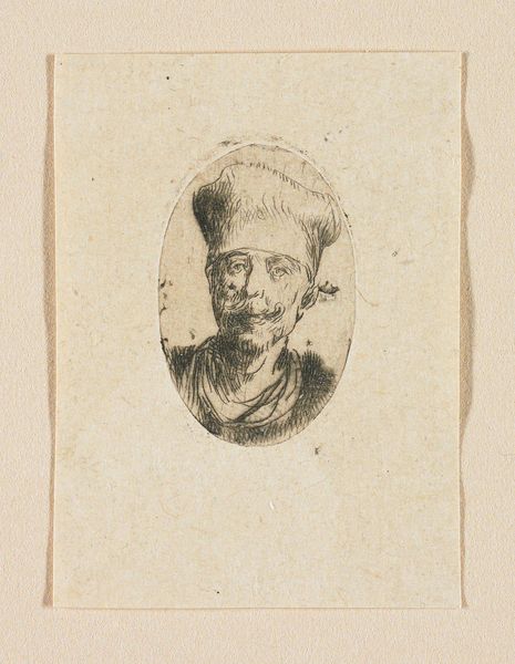 Editor: We're looking at "Portret van een Soendanese man" by Willem Witsen, likely created around 1921. It’s an etching printed on paper. It feels incredibly intimate, a quiet observation of an individual. What do you make of this work? Curator: Well, it's interesting to consider the power dynamics at play here. Witsen, a Dutch artist, portraying a Sundanese man in what was then the Dutch East Indies. This work is not just a portrait; it’s an artifact of colonial history. The print medium itself suggests wider dissemination. Who was the intended audience? Editor: That's a fascinating point. I hadn’t considered the colonial context so directly. Do you think Witsen's intent was to exoticize his subject? Curator: Perhaps not explicitly, but the very act of representing a man from a colonized society through a European lens carries inherent power imbalances. Notice the detail given to the headdress versus the relative simplicity of his clothing. It draws the eye towards a perceived exotic "otherness," potentially reinforcing colonial stereotypes. Was it exhibited back in the Netherlands, for example, feeding a particular image of the colonies? Editor: So the display setting influences how viewers understand this art piece... Curator: Exactly. This wasn't just a private study. Exhibitions, publications, and the overall art market were integral to shaping public perception of the colonies. Who had access to such imagery and what pre-conceived notions did they bring with them? Thinking about these things offers a richer, although at times troubling, reading. Editor: I see what you mean. Looking at it now, knowing the possible role it played historically adds a completely new perspective. It makes you question whose stories were being told, and by whom. Curator: Precisely. And it makes us aware of our own position as viewers within this historical continuum. Editor: This discussion has changed my perspective quite a bit. I’ll definitely be approaching other portraits with similar questions in mind now.