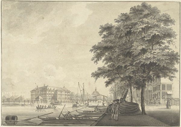 Editor: This is "De Lutherse kerk te Alkmaar" by Isaac Ouwater, made sometime between 1758 and 1793. It's a drawing, almost photographic in its detail. What do you make of it? Curator: Well, considering Ouwater's meticulous approach to depicting Alkmaar's architecture, I'm drawn to the labour inherent in creating such a detailed cityscape. Note the etching technique; how it meticulously recreates the texture of brick and tile. Editor: You’re thinking about the labour that went into creating the drawing? Curator: Exactly. How does the act of creating such a precise image reflect the societal value placed on craftsmanship and documentation in 18th-century Netherlands? Furthermore, we must consider how the consumption of such imagery fed into a growing sense of civic pride. Editor: So you're not really focusing on the religious aspects of the building itself, but rather the production of the image as a commodity? Curator: Precisely. Think about who commissioned or purchased such an image. Was it the church itself, looking to advertise or legitimize itself? Or wealthy citizens celebrating their town? The image itself becomes a form of capital. Look at the regularity in the bricks, how this reflects standardized production in a time of increasing urbanization. What labor went into constructing that Lutheran church and who benefited from it? Editor: It's fascinating to think of it in terms of materials and social forces. Thanks, that’s a completely different way to view art than I usually do. Curator: Understanding art is like peeling back layers of history. Examining materials and methods opens doors to richer meanings.