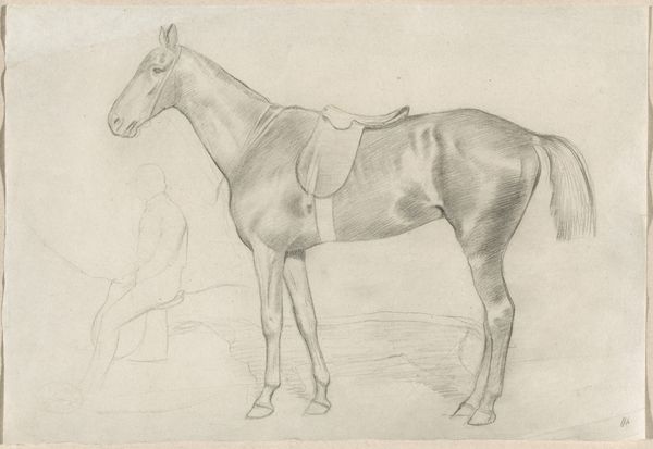 Curator: Looking at these pencil sketches on paper by Jan Kuyper, called "Studies van een paard," dating from 1855 to 1912, I immediately think about the symbolic importance of the horse through time. Editor: The materiality speaks of study and practice. Look at the economical use of line, the type of paper he’s chosen, these weren’t meant for grand display. They were tools for… labor, really, of seeing and capturing. It’s interesting. Curator: The horse as a symbol appears in cultures across the globe as an emblem of nobility, war, and freedom. Considering the period these studies were created, the social connotations tied to equestrianism would still have been quite pronounced. Kuyper’s interest may lie in those cultural resonances. Editor: I see something a bit more grounded, if you will. I'm interested in the working-class associations around this drawing. Consider how central horses were to agriculture, transport, industry… Their presence was interwoven with working lives. Was Kuyper studying a work animal, imbuing it with its own inherent dignity? Curator: That's a fascinating point, especially in light of artistic representations frequently associating the horse exclusively with aristocratic leisure or military power. But look closely at the soft rendering of the animal’s eye and the tender rendering of its muzzle: It speaks, perhaps, of empathy and observation. The horse becomes more than merely symbolic here. Editor: The intimacy certainly comes across through that fine application of pencil. The paper, too, almost appears like skin itself in its thinness, further hinting at organic form that carries a real sense of lived labor. The drawing isn't just about capturing a subject; it shows how art, too, comes from real materials, and from real, sustained effort. Curator: And through that synthesis of empathy, symbolic weight, and technical rendering, Kuyper allows us a closer inspection into not just the exterior appearance but perhaps a little of the inner spirit. Editor: Leaving us, finally, considering not just WHAT is portrayed, but HOW the object and the act of drawing themselves carry cultural value and can represent shared realities of that time.