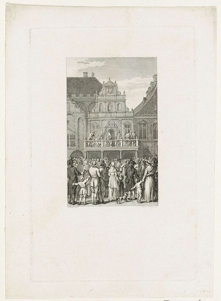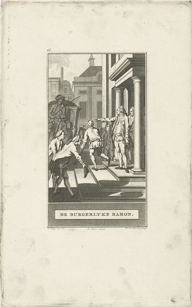 Curator: Here at the Rijksmuseum, we have before us a striking engraving from 1778 to 1785 entitled "Oude Bedelaar," or "Old Beggar," crafted by Noach van der Meer the Younger. It presents a detailed cityscape and falls under the genre painting category. Editor: Ah, my initial impression is a chill – the cool detachment of the well-to-do contrasted with the old man’s almost theatrical plea. The composition neatly divides the scene into zones of wealth and...well, not-wealth. Curator: Precisely. Van der Meer masterfully uses the formal elements to reinforce this division. Note the meticulous lines defining the cobblestones and the architectural precision of the buildings. The rigid geometry emphasizes social structure. Consider also the engraving medium itself; the deliberate control mirroring the controlled society depicted. Editor: Yes, it’s almost clinical in its observation. I see the posture of the beggar; he leans, a supplicant. His out-thrust hand seems to echo the lines of the canal in the background, this idea of distance and barriers... perhaps even desperation? I imagine him weary, bone-cold. It makes you think of all the stories absent from grand histories – lives swept to the side. Curator: The "genre painting" aspect is vital here. Van der Meer elevates a common street scene to something worthy of study. He directs the viewer's gaze with impeccable staging. The artist uses semiotic codes typical of the period, presenting attire as signifiers of class and station. Note how the brighter rendering makes the “well-do-to” almost radiate over the muted tones used to depict the old beggar. Editor: The "theatre" in their dress emphasizes this staged contrast further, creating a tableau of humanity playing out with some real life consequences. It asks, how complicit are we when witnessing this divide, or how we treat another human being when we deem ourselves "better". A question, it seems, just as relevant today. Curator: Indeed, it brings questions on ethics. It demonstrates how art becomes a potent tool for analyzing social relations and power structures, as its form dictates its meaning. Editor: Makes you shiver, doesn't it? All those etched lines... such a cold medium for such a stark reality. It stays with you, this little slice of history. Curator: Yes, its carefully designed elements resonate across the centuries and reveal lasting and pertinent lessons.
