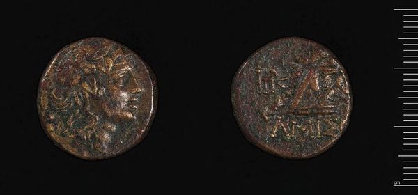 Editor: Here we have a coin of Agathokles, Tyrant of Syracuse. The low relief and worn surface make me think about the hands that exchanged it, the trades it facilitated. What do you see in this piece? Curator: I'm drawn to the materiality. Think about the extraction of the metal, the labor of the minters, and the act of striking the coin. It's not just an image; it's a physical manifestation of power, meant for circulation, for legitimizing Agathokles through everyday exchanges. Editor: So, it's more than just currency; it's propaganda on a mass scale? Curator: Precisely. The coin’s value lies not just in its weight but in its ability to communicate and control. It is the physical embodiment of a social construct. Editor: That shifts my perspective entirely. It's fascinating to consider the coin as a tool of social engineering. Curator: Indeed, and analyzing the coin this way gives us direct insight into the economic and power structures of the time.
