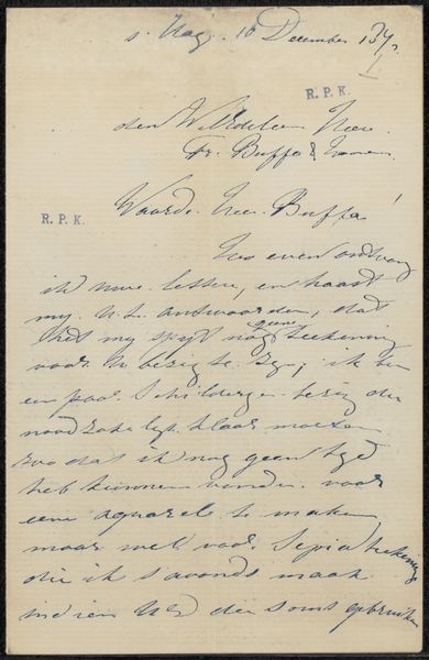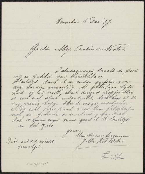 This letter was written by Frans Everbag to jonkheer Hendrik Teding van Berkhout, in 1913, with ink on paper. The paper is mostly blank, with the handwriting clustered toward the top. You can see where the writer pressed hard, how he formed the letters, their particular quirks and idiosyncratic shapes. The strokes of the pen vary in thickness, some lines darker where the ink pooled, creating a texture as much visual as informational. Each curve and flourish feels deliberate, a physical dance across the page. Even though I can't read the language, I can read something in the attention given to each mark. It's like when Agnes Martin hand-drew the lines of her grids, each one wobbly and subtly unique. There's a similar sense here of the human hand leaving its trace, making the process visible. Letters, like brushstrokes, become a record of the artist's presence.