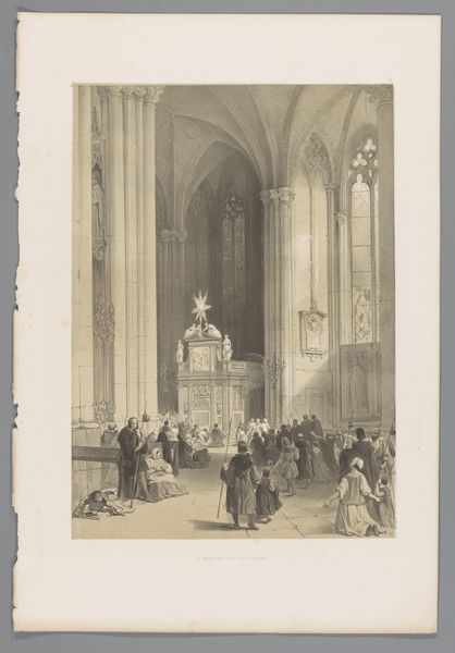 Louis Haghe captured this image of the tabernacle in the Saint Lawrence Church in Nuremberg through lithography. Dominating the scene is the tabernacle itself, adorned with sculptures, its presence a testament to faith and artistic devotion. Consider the motif of kneeling figures at the base of the tabernacle. This posture of supplication transcends epochs; in ancient Egypt, pharaohs knelt before their deities, and the gesture persists through the medieval era in depictions of saints and sinners alike. The emotional weight of humility and reverence permeates this artwork, engaging the viewer on a subconscious level. The tabernacle, a sacred repository, echoes similar structures found in various cultures, from the Ark of the Covenant to the reliquaries of medieval saints. It embodies a cyclical progression, resurfacing in different contexts with new meanings. The ornate details and Gothic style, indicative of a particular period, are woven into the larger tapestry of human expression, resonating through time.