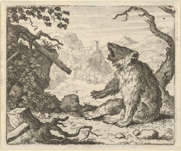 Allart van Everdingen etched this plate to illustrate Hendrick van Alcmar's Renard The Fox. The prominence of anthropomorphic animals reveals a rich tapestry of symbolic expression. The bear, wolf, and fox, central figures in this revelry, are not merely creatures of the forest; they embody human traits. Since ancient times, the fox has been a symbol of cunning, appearing even in Aesop's fables. The wolf, dancing with fervor, carries the weight of its dualistic nature: loyalty, but also the wild, untamed aspect of nature. The bear embodies raw strength, a figure looming large in folklore and often representing the untamed self. Notice the dancing animals - they represent primordial, chaotic states. This representation transcends mere fable, resonating with the Dionysian spirit of ecstatic abandon that echoes in art through the ages. It embodies our primal connection to the animal kingdom, a mirror reflecting our own complex natures.
