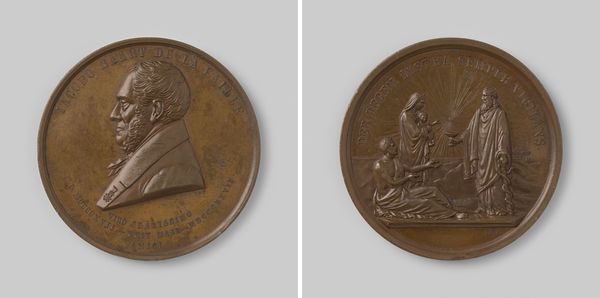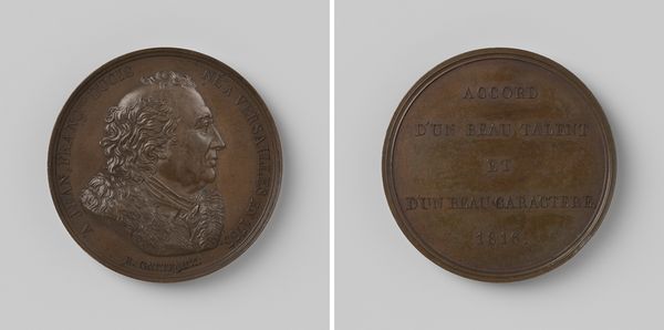 This bronze medal commemorates the death of Petrus Smidt van Gelder, a numismatist from Zaandam. Made by Johannes Petrus Schouberg, it presents us with a fascinating interplay between portraiture and epigraphy. The most prominent visual symbol here is the portrait of the deceased. From antiquity, the sculpted image, be it on coins or busts, has served as a potent means of immortalizing the individual. Think of the Roman emperors whose visages, stamped onto currency, projected their power across vast territories. The impulse to preserve a likeness, to cheat mortality through art, speaks to a deep-seated human desire—a collective memory, if you will—to transcend our fleeting existence. The inscription, too, plays a crucial role. Words etched in metal offer a narrative, fixing the subject within the currents of time. Much like the epitaphs on ancient tombstones, they call out to us from the past. Each word, a tiny vessel carrying meaning, echoes through the corridors of history, reminding us of the cyclical nature of life and death.