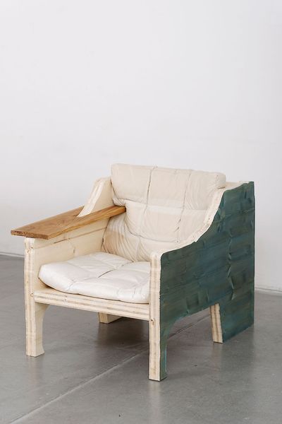 Curator: This is Ian Kiaer's "Brueghel Project / Casa Malaparte," an installation piece now residing in the Tate Collections. Editor: It feels strangely sparse, almost like a stage set waiting for actors. The textures are very tactile; the paint, the rough edges of the blue block... Curator: Kiaer often references architectural spaces, and in this case, it's the iconic Casa Malaparte on Capri, filtered through Brueghel's landscapes. The social and architectural collide. Editor: That blocky form, its crude construction, points towards the raw materials, the unglamorous realities of building a utopian ideal. Curator: Indeed. Kiaer subtly critiques utopian aspirations, suggesting their inherent fragility and often unrealized potential within society. Editor: It definitely leaves you pondering the relationship between grand visions and their material underpinnings. Curator: Ultimately, Kiaer invites us to consider how art engages with broader historical and cultural narratives. Editor: And how those narratives are often shaped by the simplest of materials.