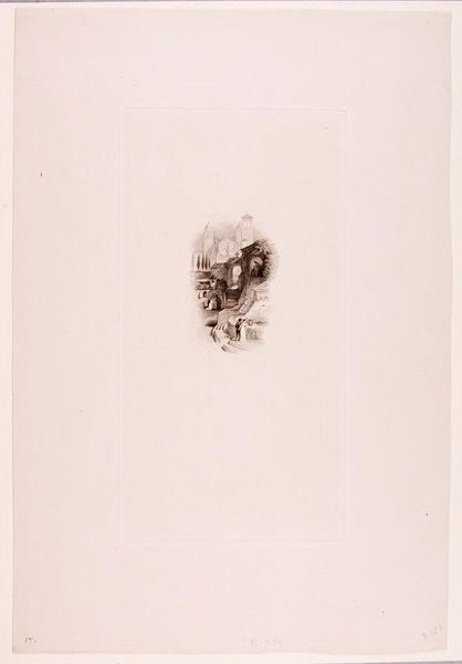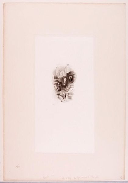 Curator: What strikes me most about this print, Edward Goodall's "Smailholme Tower," is the feeling of romantic isolation. It's like a memory, faded at the edges. Editor: Indeed. There's a dreamlike quality; the tower emerges almost ethereally from the landscape. Historically, Smailholme was a border peel tower, a defense against reivers. The imagery evokes a sense of vulnerability, but also resilience. Curator: Exactly. Towers often function as phallic symbols, representing power. But here, softened by the delicate rendering, it suggests a different kind of endurance, perhaps a psychological one. Editor: I see your point. It's interesting how Goodall uses the vignette to isolate the tower, minimizing its connection to the surrounding socio-political landscape, while enhancing its symbolic weight. It's no longer just a defensive structure but something more introspective. Curator: A place of refuge, maybe? A space to confront what haunts us? Editor: Perhaps both. It's a lovely reminder that even in ruins, places hold onto their stories, shaping ours in turn.
