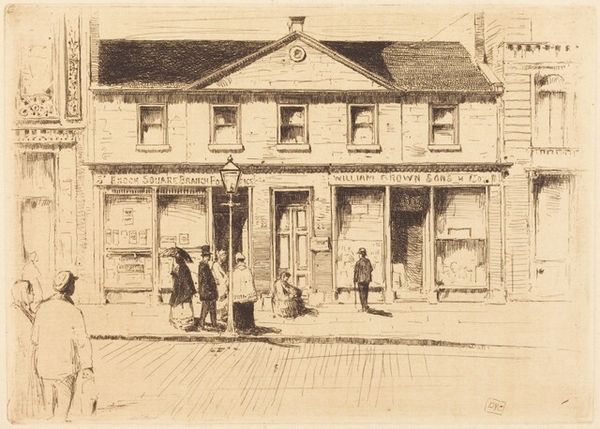 Curator: Earl Horter’s etching titled "Williamsburg, Ludwell-Paradise House" presents a rather captivating architectural study. Editor: My first impression is of a slightly melancholic stillness, isn’t it? The intricate details almost feel weighed down, particularly with the heavy shading. There's a sense of the past looming large, and the high contrast reinforces the importance of looking more deeply at the details in the composition. Curator: Precisely! The artwork highlights the Ludwell-Paradise House, and it offers us insights into the cultural history and socio-political context of the residence and potentially even of the people connected with the building. Consider the architecture itself; the symmetrical façade embodies classical ideals while existing in a space shaped by the politics of colonialism and enslavement. Editor: That’s an interesting juxtaposition. Thinking about this space as part of Williamsburg history and present reality, I consider if the very structure represents certain power dynamics that can't be divorced from the present discussion, then this etching almost immortalizes a past we still contend with. Even the artist’s choice to render the image in grayscale seems to me to strip away the vibrance, perhaps to confront us more starkly with its implications. Curator: A potent reading. Now, think about the absence of human figures. It’s interesting. Perhaps this invites contemplation on power and absence. The manicured trees soften the severity, don’t you think? The artist has clearly paid meticulous attention to them, maybe suggesting nature and time exist beyond our controlling gaze? Editor: That reading resonates! The trees disrupt the stark geometric perfection of the building, possibly signifying nature’s reclamation or resistance to structural limitations of a colonial, built world. Earl Horter's perspective compels us to ask not only “what is depicted?” but, importantly, “whose narrative is being told, and whose is obscured?". Curator: And that critical perspective is something the art world deeply needs! This image stands as a striking meditation on memory, history, and power. It prompts us to see buildings, places, and etched works not merely as records but also as active participants in shaping our understanding of ourselves and our world. Editor: Absolutely, it feels essential to think of art like this when trying to unravel all of its significance!